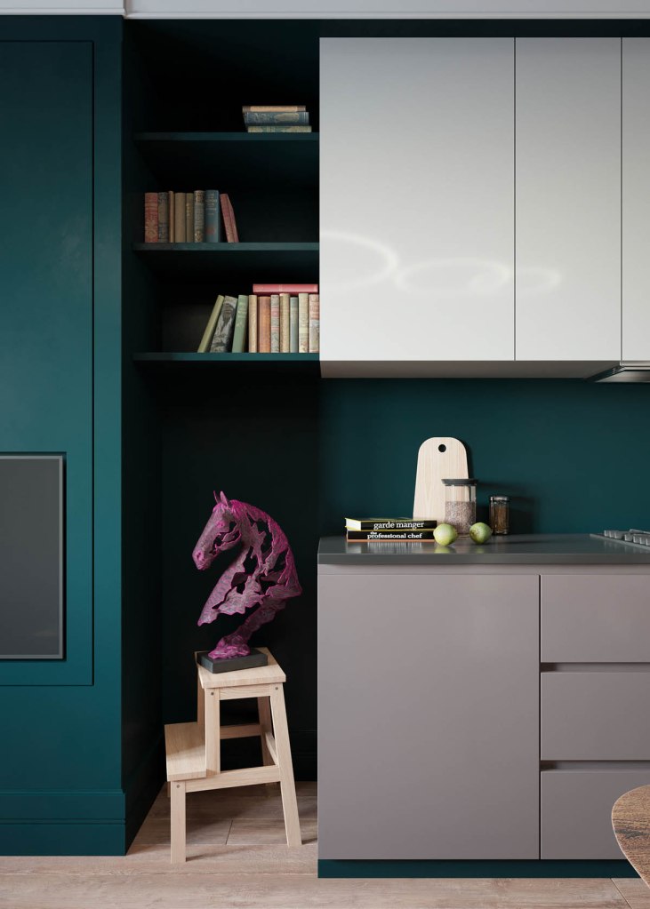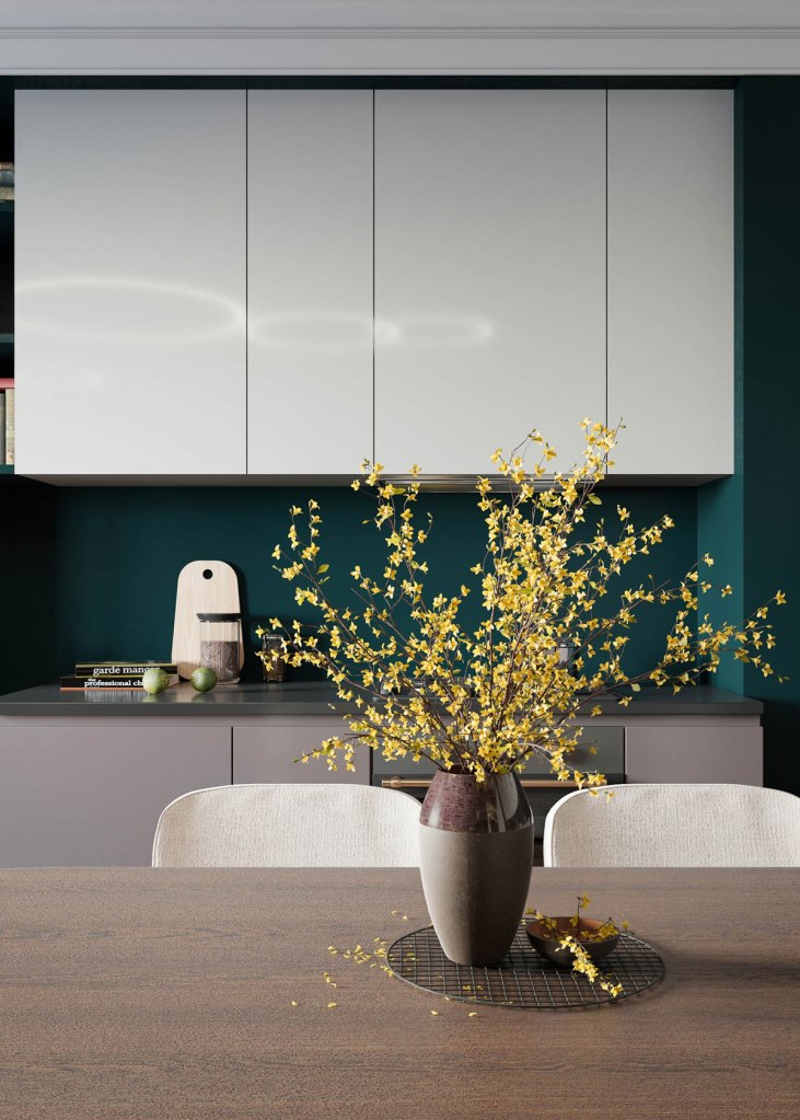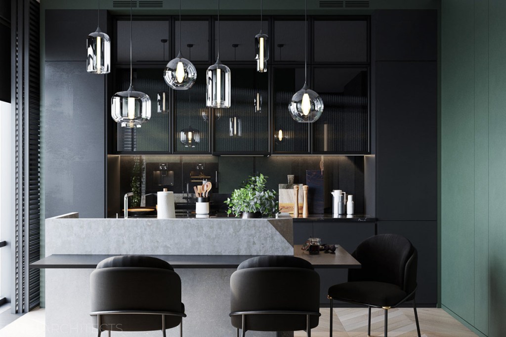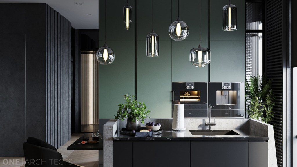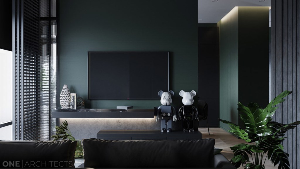 Dark green and handsome, these three home interiors each take a tall stand on style. The first two of our dreamy dark green interiors have an offbeat sort of edge. Hot pink accents burst onto the scene via outrageous wall art and unique art sculptures. Quirky personality particularly shines in the second of these, as a more colourful and patterned eclectic vibe builds. We finish up with a home more dedicated to the dark green scheme, with less distraction. Instead, we find luxe interludes of glossy white marble, and complete aesthetic cohesivity.