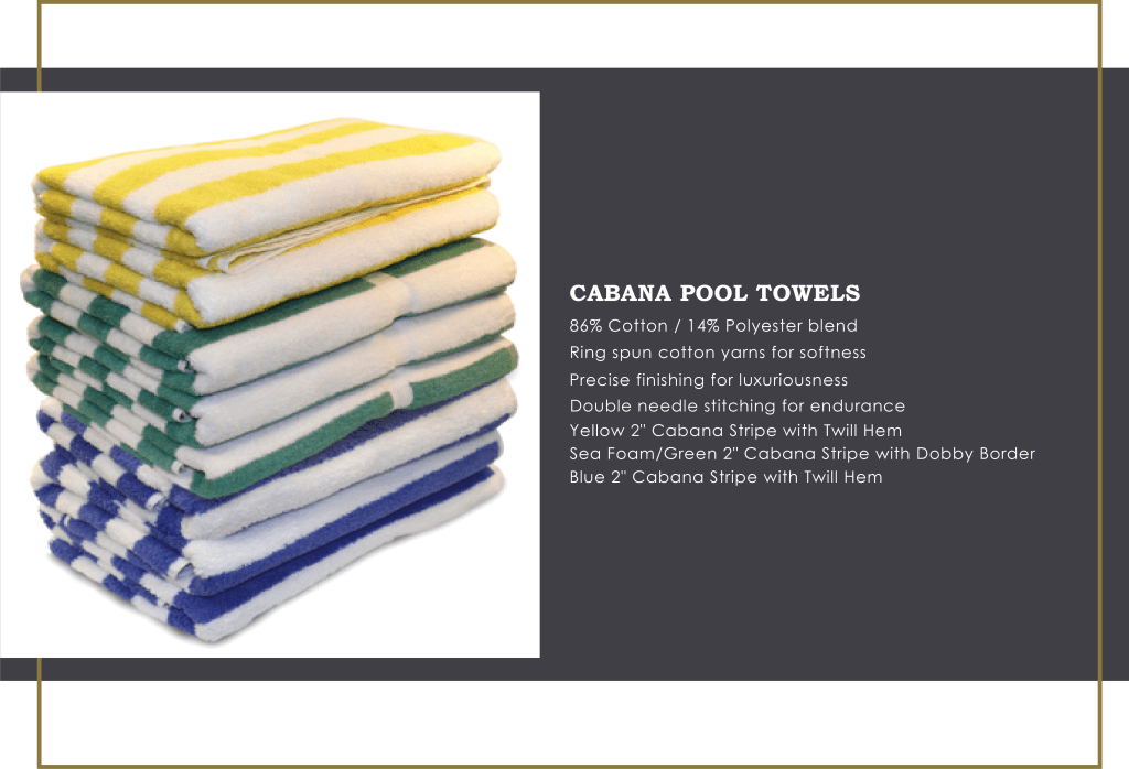 Our toweling range includes bath towels, hand towels and pool towels, as well as pool chair towels, slippers, robes and bath mats. Send us your specifications, quantity. Let us design your next luxury towel collection.