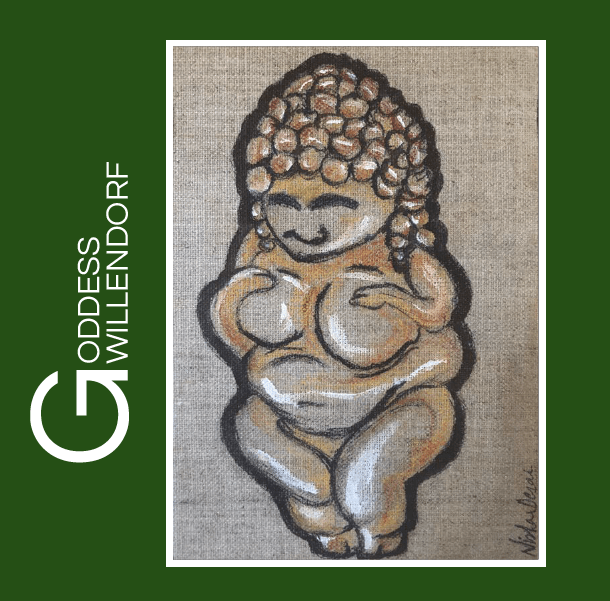 Willendorf Goddess is particularly relevant to women today as a symbol of the beauty of the fully-fleshed, maternal female body.She is a vital antidote to a culture that denigrates softness of the body (or, really, anything soft at all) — a culture that admires feminine beauty most when it looks somewhat masculine, with the flat belly (or even 6-pack abs!) and pared down flesh more naturally found on young boys.This cultural distortion of femininity has, at its root and as its fruit, the disempowerment of women.Women’s natural form includes a softly rounded belly and a layer of healthy fat under the skin; without this, women can lose even the most basic expression of the Goddess: the magickal menstrual cycle.Divided from her body, denied her sanctity and beauty, the Goddess herself loses her life giving power! The Willendorf Goddess challenges these prejudices and boldly proclaims the power of women as life givers and creatrixes.She dares us to love ourselves fully — even (especially!) the “flaws” that make us unique.