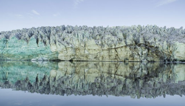 Among the works include artist Peter Funch’s use of vintage postcards as a model for his images of American glaciers to capture the effects of glacial recession; Norfolk + Thymann’s images of part of the Rhône glacier covered in geo-thermal cloth to limit melting; Richard Mosse’s photograph of the ice cave under the Vatnajökull glacier in Iceland; and Noémie Goudal’s large-scale photographic installation mirroring the shifting glacial landscape, printed on biodegradable paper.